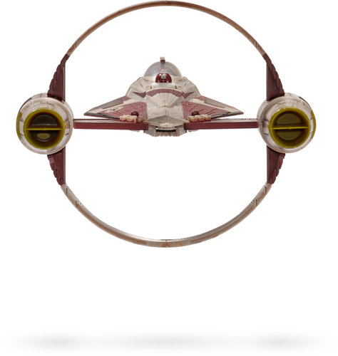 La nave utiliza un anillo de hipervelocidad para saltar al hiperespacio. Nave de 13cm que permite acoplar el anillo hipervelocidad y expulsar al droide.