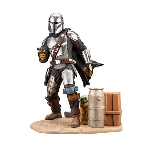 Estatua de PVC de la línea «ARTFX», tamaño aproximado de 26 cm, de El Mandaloriano con su armadura Beskar y Grogu.