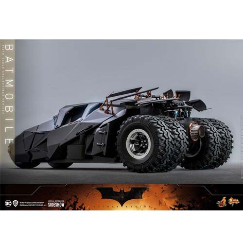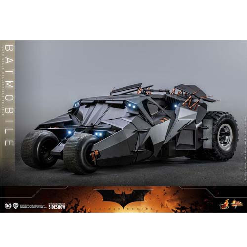 Basado en la trilogía The Dark Knight de Christopher Nolan, Sideshow y Hot Toys presentan el supervehículo Batmobile como un impresionante vehículo coleccionable de sexta escala que se puede combinar con la figura de Batman para recrear escenas más impresionantes.